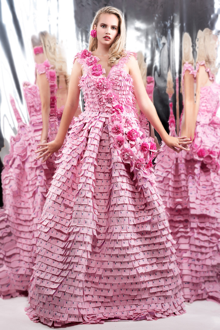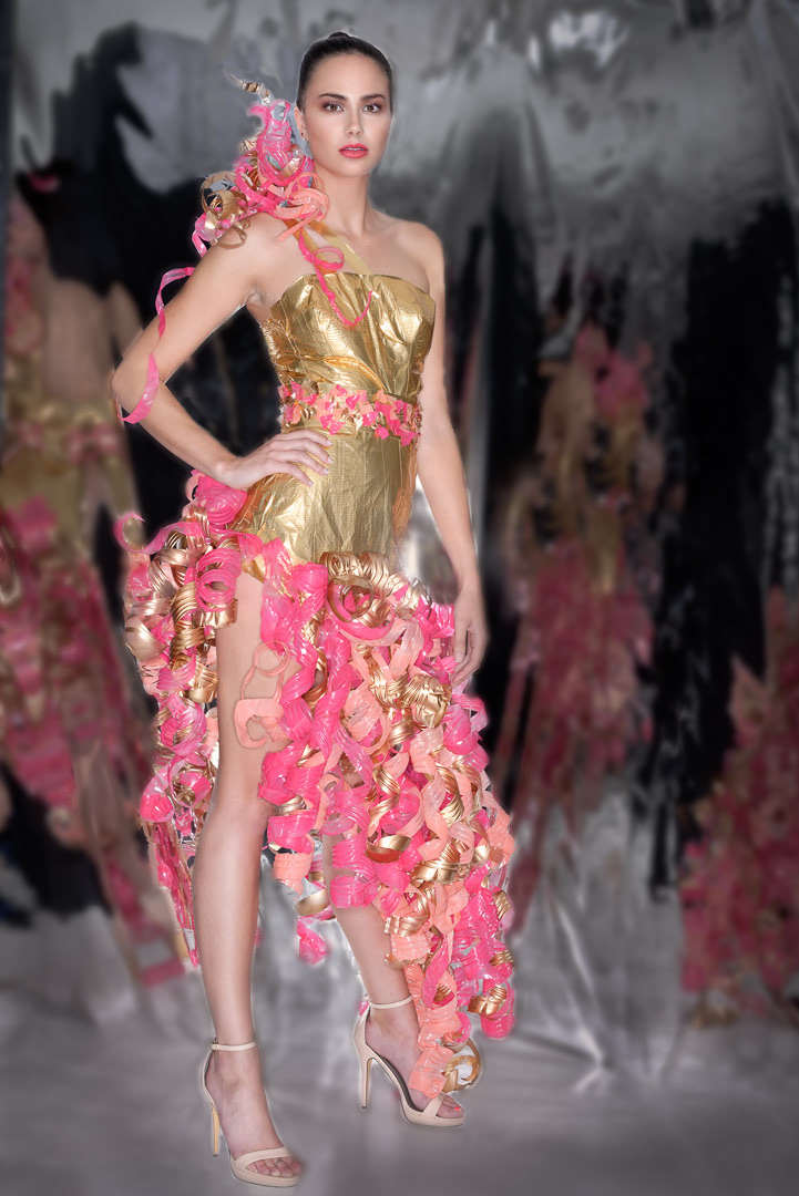 The gowns here were constructed from materials not usually associated with dress making by fashion designer, Alexis Cook.
