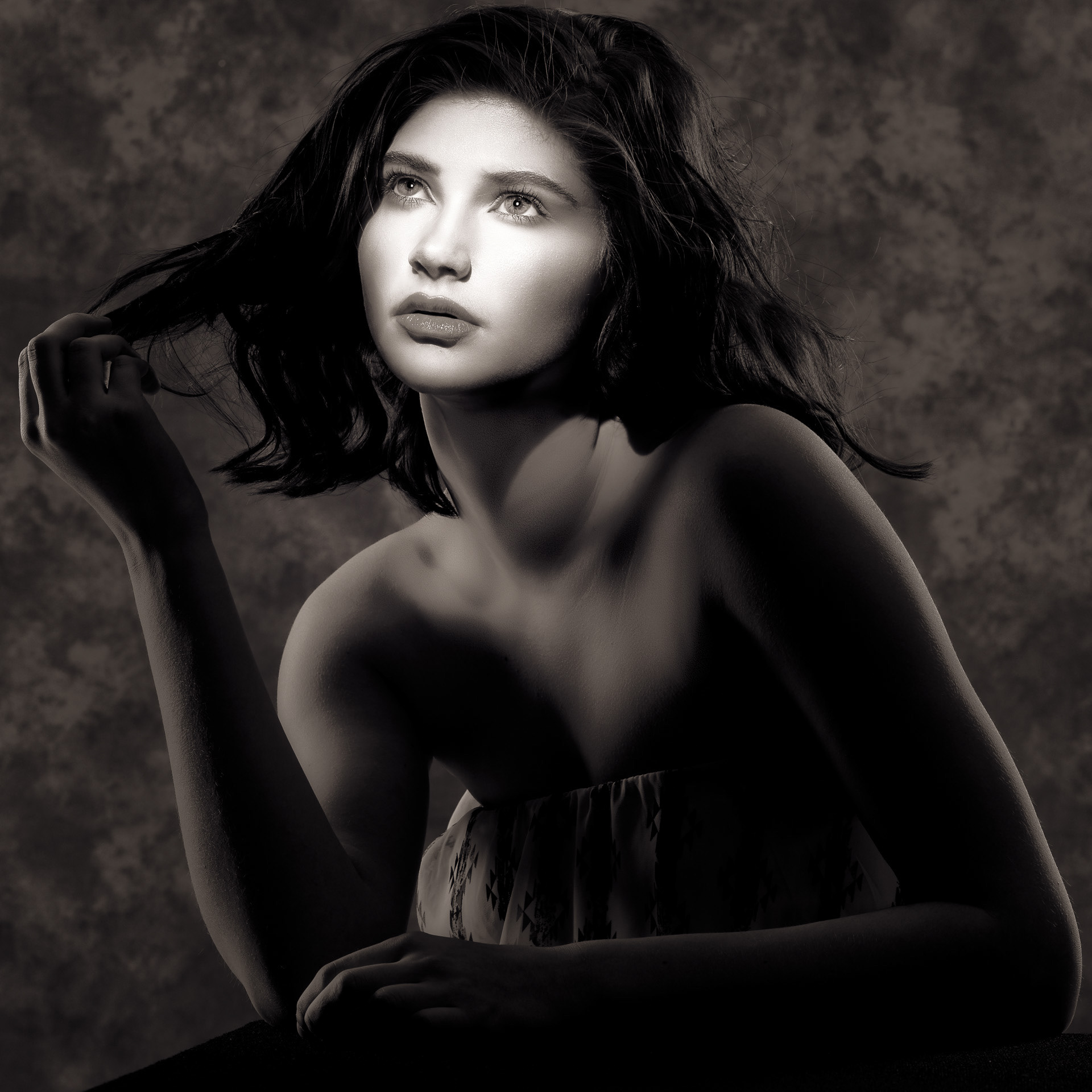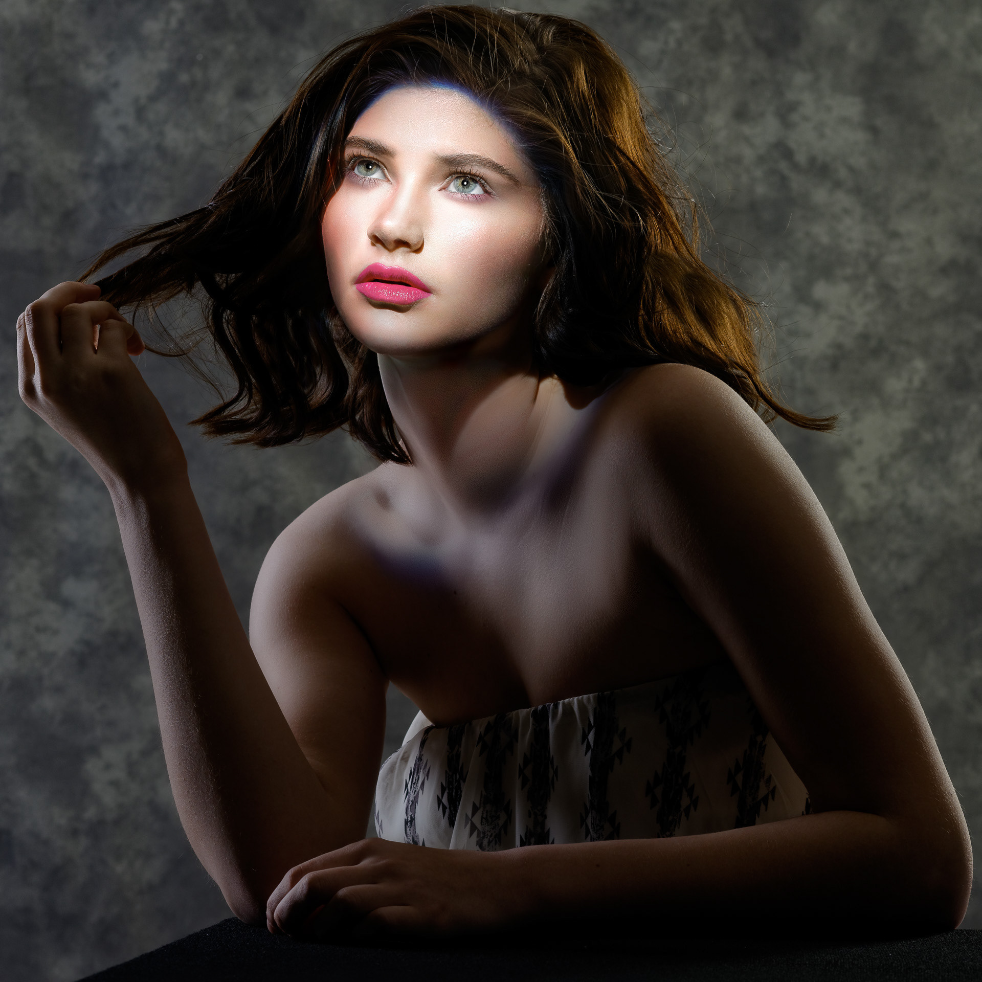 Test from a beauty session using a Broncolor spotlight, with process variations.